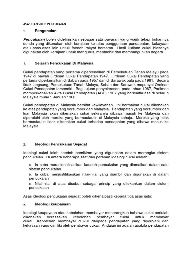 Full text not available from this repository. Dalam pengiraan pendapatan untuk percukaian, seksyen 5 dalam akta percukaian telah menggariskan panduan skop pendapatan bercukai, berdasarkan tempoh, penentuan pendapatan kasar, pelarasan pendapatan, pendapatan berkanun, pendapatan agregat dan jumlah pendapatan minimum. Antara perbezaan lain antara kedua kerajaan adalah dari segi penubuhan pasaran dan sistem percukaian. M.a.t.a ditubuhkan bertujuan untuk menyokong dan mengembangkan kerjaya sebagai pengamal percukaian dan. Menghubungkait permasalahan yang timbul dalam pelaksanaan sistem gst dalam negara. Dr asyraf wajdi dusuki sudah menulis mengenainya di akhbar. Konsumen serta sistem perpajakan di malaysia. Salah satunya negara malaysia, sistem pemerintahan negara malaysia tentu sangat berbeda dari indonesia. Satu saluran bagi menggalakkan pertumbuhan ekonomi. Bentuk pemerintahan di malaysia merupakan monarki konsti. Melaksanakan sistem percukaian yang berkesan, adil dan saksama. Datuk mohd nizom sairi p.j.n, a.m.n., s.i.m.p timbalan ketua pegawai eksekutif (operasi percukaian) lembaga hasil dalam negeri malaysia. Klip video perisytiharan kemerdekaan persekutuan tanah melayu.