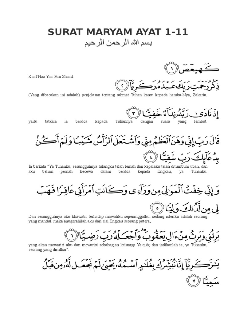 Baca surat maryam lengkap bacaan arab, latin & terjemah indonesia.